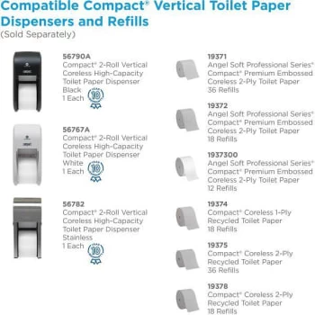 - Compatible with Compact toilet paper refills 19371, 19372, 1937300, 19374, 19375 and 19378