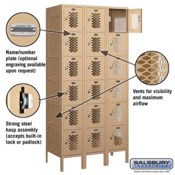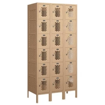 - Salsbury Industries® Tan-Six Tier Box Vented Metal Locker 6 FeetX18 Inches